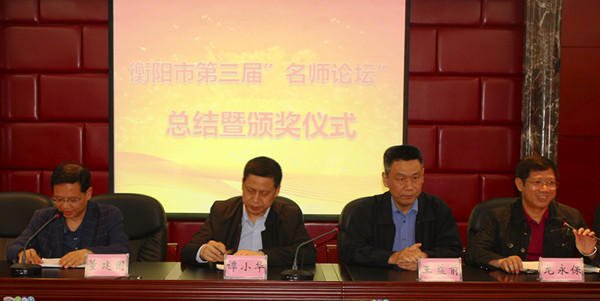 在论坛的总结和颁奖环节,龙永保就名师提交的主题论文进行了点评,王益前对本次论坛活动进行了最后总结。随后龙永保宣读了衡阳市第三届名师论坛优秀表彰决定,宋桂林等三位同志获论文评比一等奖,刘敏等五位同志获论文评比二等奖,欧阳旭红等七位同志获论文评比三等奖,杨苏等12名同志获得“衡阳市第三届名师论坛优秀学员”称号。