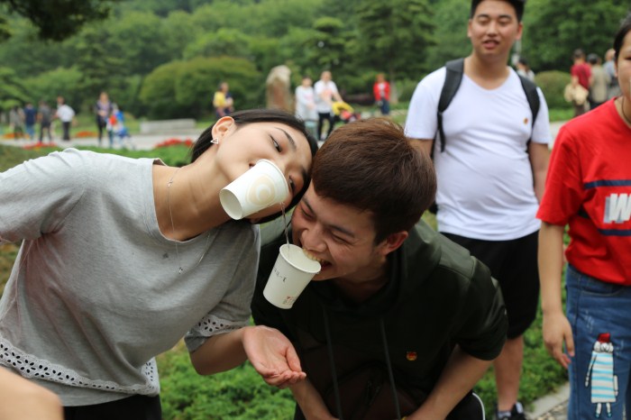 回到铜像广场,学员们分成八个小队在旅游管理系尹春玲老师和裁判队的指导下,举行了“一学一做”主题教育定向越野活动。各小队在红色队旗上写上了各自的队名、口号和标识,在微信定位上找到并完成了团学知识问答、奔跑吧团学、衔杯传水、数字传递等四个关卡任务,检验了《团章》、习总书记系列讲话、《学联学生会组织改革方案》学习成效,增进了彼此了解,增强了团队默契、协作精神和凝聚力。