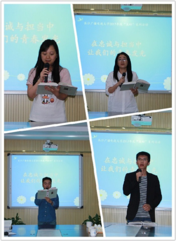 接下来,在轻柔的音乐声中,以“喜迎十九大 忠诚与担当”主题的诗歌朗诵会拉开序幕。在诗情画意当中,青年老师们敞开了心扉,释放了激情,一首首包含深情的诗歌朗诵彰显了电大人朝气蓬勃、积极向上的精神风貌。