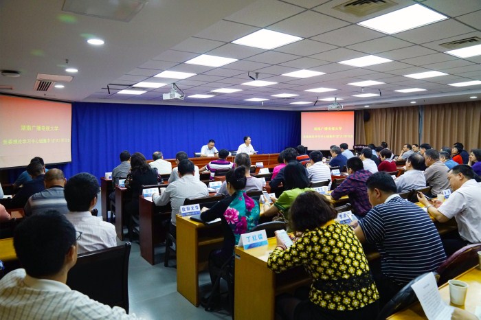5月10日下午,学校党委理论学习中心组(扩大)集中学习会在远教楼四楼演播厅举行。全体校领导、全体正处级干部、校属各单位(部门)党政主要负责人参加学习。学习会由党委书记陈建民主持。