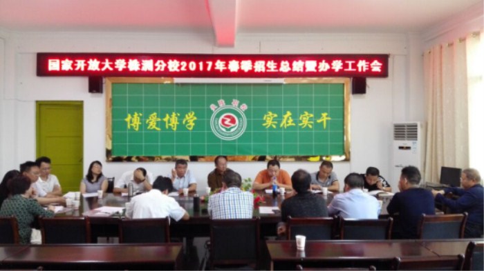 5月16日,株洲市电大教学点2017年春季招生总结暨办学工作会在炎陵电大工作站召开。株洲电大党委书记、校长罗立林,党委委员、副校长汤毅出席会议。教务科、招生办、开放教育学院负责人,各工作站、教学点分管领导及负责同志等20余人参加了会议。会议由汤毅主持。