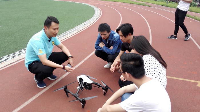 两天试飞、一次讲座都无法满足学生对新事物的未知欲望,应大部分同学的要求,企业方决定开办无人机兴趣创业班。学习时长8天共计 64课时,学习内容包括无人机结构与原理简介、无人机组装调试、无人机飞行操控、行业应用实训(航拍及后期制作,电力巡查植保教学)等,并赠送训练用无人机一台。