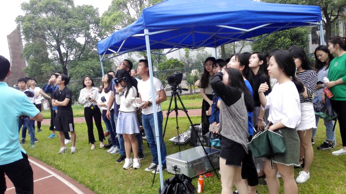 5月15日—16日,活动安排了五架无人机在学校足球场全天展示。同学们可体验VR视角看校园,通过VR同传带给大家不一样的校园视觉体验;现场启用精灵4无人机给部分同学航拍一张照片或一段小视频,在飞行的角度看不一样的自己。