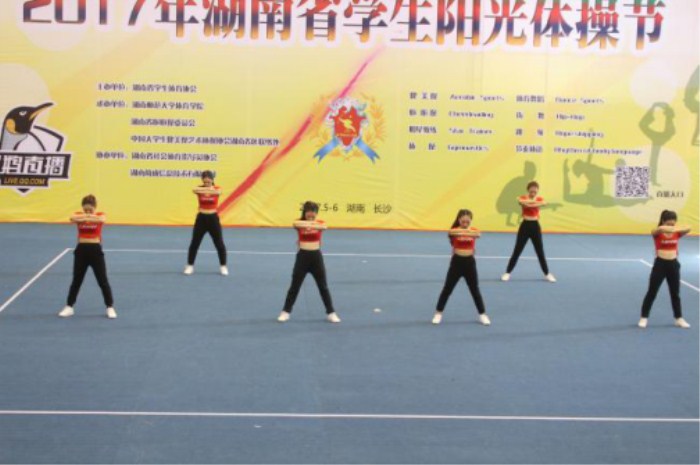 由湖南省教育厅主办、湖南师范大学承办的2017年湖南省学生阳光体操节健美操比赛于5月29日落下帷幕,我校健美操队在熊纯子和柳波两位教练的指导下,荣获街舞啦啦规定套路冠军、全民健身二级有氧舞蹈冠军、全民健身四级有氧舞蹈冠军。这是我校健美操队在省阳光体操节健美操项目上连续两年摘得桂冠。