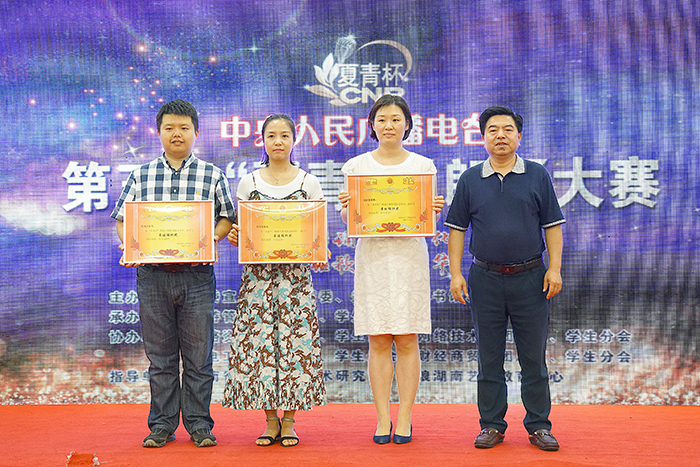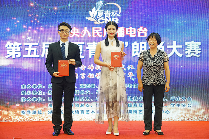 经过激烈角逐,来自机电工程系的杨璐等六名选手带来的群诵《关于青春》,以激昂的文字和激情澎湃的朗诵,征服了现场的评委和观众,获得了特等奖;来自旅游管理系的曾亮同学和网络资源系的何俊霖同学分别凭借独诵《山雀子噪醒的江南》和《海燕》获得了一等奖;旅游管理系、网络资源系和机电工程系荣获大赛优秀组织奖。我校将从本次决赛获奖作品中选送三组优秀作品参加今年7月的全省决赛。