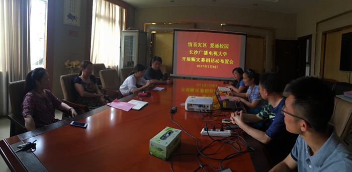 为帮助受灾困难群众和灾区尽早度过难关,恢复重建,进一步弘扬中华民族“扶贫济困,助人为乐”的传统美德,学校立即行动,迅速响应。7月 4日,学校党委发起党员干部投身抗洪抢险恢复重建的倡议书,号召全体教职员工投身到抗洪救灾各项工作之中,并及时将湖南汛情的最新情况转发到学校微信群。7月6日,在收到长沙市直工委,市教育局、市教育局工会关于抗洪赈灾文件后,学校立即行动,研究部署抗洪救灾工作,学校党委下发《关于开展赈灾募捐活动通知》。7月8日,学校党委组织工会开展募捐活动布置会,校领导、工会委员、工会组长及相关科室领导带头捐款,并向全体教职员工发起倡议。