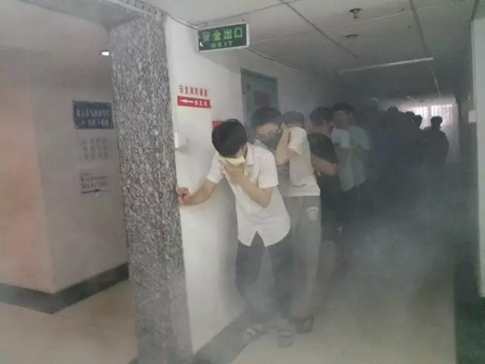 为保障学生安全,消防演练开始前,我校老师与演练教练多次进行细节上的沟通。消防演练开始后,烟雾弥漫,学生在安全责任教师的指导下用湿毛巾捂住口、鼻,手扶着墙壁,低身下楼。所有班主任老师在全部学生离开后,仔细检查所有房间最后离开,等到所有学生到达安全集合地点后,班主任清点学生人数,确保每位学生的安全。