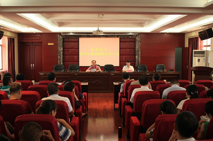 继暑期干部学习班之后, 8月22日上午,衡阳电大2017年暑期教职工学习班开班。特邀湖南省优秀共产党员、衡阳市道德模范、衡阳市特殊教育学校刘玲琍老师作师德教育讲课。校长萧烽作开班讲话,副校长阳年主持开班学习。