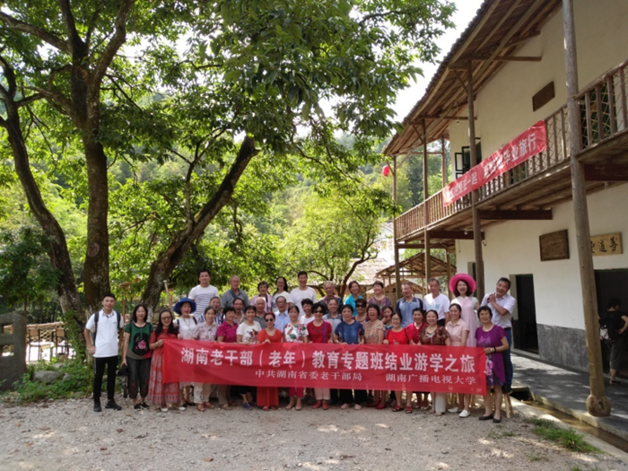 8月25日,由中共湖南省委老干部局和湖南广播电视大学共同主办的湖南老干部(老年)教育专题班结业游学活动,在浏阳大光洞书院举行,共有来自14个省直单位的35名优秀学员参加了本次游学活动。此次活动以“学在途中,乐在其中”为主题,通过体验式学习,充分展示学员在线学习的成果,同时又给学员提供了一个沟通交流的平台,让老干部们在笔会、摄影中深切感受到快乐。