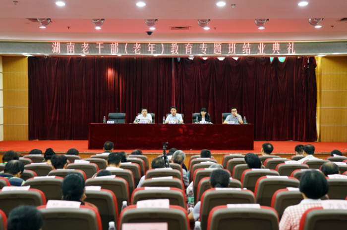 会上,吴易雄宣读了中共湖南省委老干部局、湖南广播电视大学《关于表彰湖南老干部(老年)教育专题班优秀组织单位和优秀学员的决定》;授予4个“优秀组织单位”奖牌和66名“优秀学员”荣誉证书;指导老师代表朱世俊,学员代表邱运斌、胡凌交流了学习心得;朱新洲对本期专题班情况进行了总结。