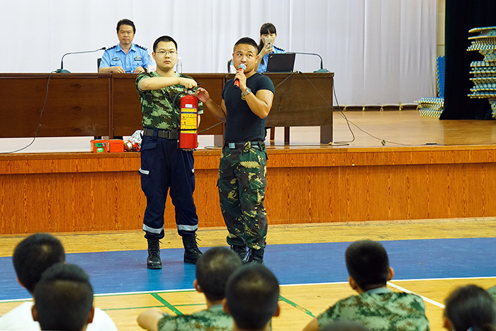 保卫处陈良云为全体新生上了一堂以“安全第一,生命至上”为主题的消防知识讲座。讲座中,通过观看视频与理论相结合,从火灾的性质和危害性、如何预防火灾、遇到火情如何处理等方面进行了详细阐述,并结合学校火灾案例,介绍了学生宿舍常见的火灾隐患,着重讲解了火灾现场如何采取正确的方法实现自救和逃生。随后,学生处李志龙现场示范如何使用正确使用消防器材和防毒面具。