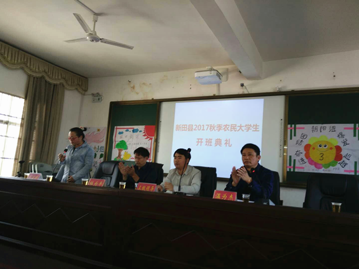 10月27日,新田县108名农民大学生来到该县教师进修学校参加开学典礼,正式成为一名真正的大学生,圆了自己的大学梦。
