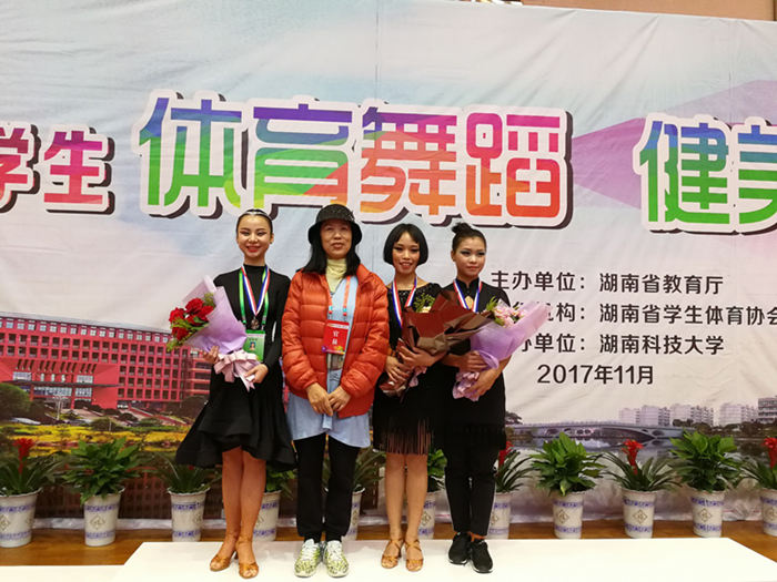 由湖南省教育厅主办,湖南科技大学承办的2017年湖南省大学生体育舞蹈比赛于11月18日晚落下了帷幕,此次比赛共有28所高校代表队参加,参赛运动员近500人。我院体育舞蹈代表队由陈碧华副院长带队,在教练组曾伟、邱颖俊的指导下,我院学生运动员们不畏强手,努力拼搏,发扬了湖南网院人“追求卓越、精益求精”的精神,勇夺四金一银三铜的好成绩。(公共课教学部)