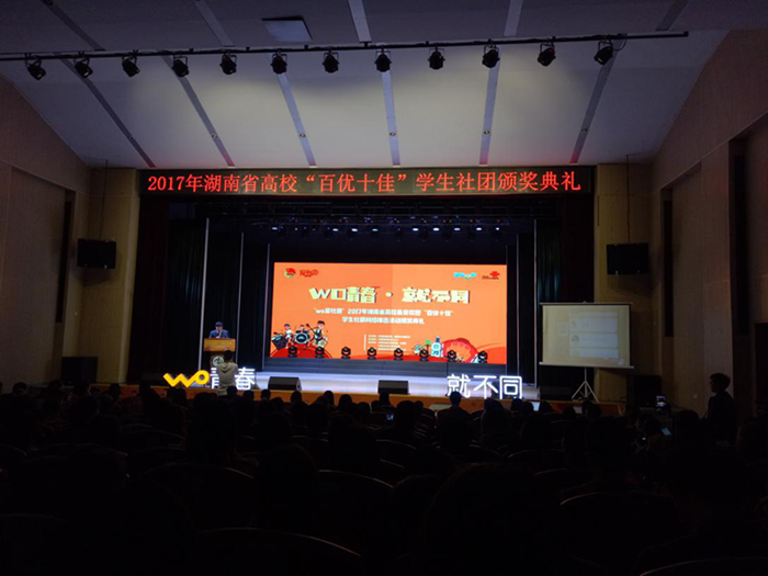 11月24日,由共青团湖南省委、湖南省学生联合会主办、共青团湖南省委宣传部、学校部承办的“WO爱社团”2017年湖南省高校最受欢迎“百优十佳”学生社团颁奖典礼在中南林业科技大学隆重举行,我院计算机协会获“百优学生社团”荣誉称号。