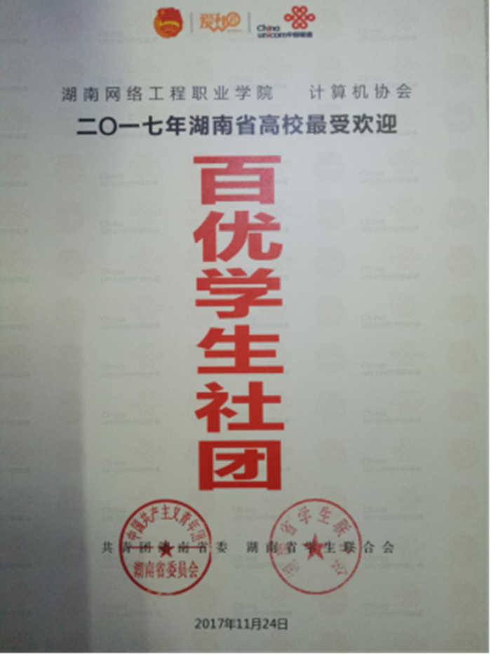 我院计算机协会获2017年湖南省高校最受欢迎“百优学生社团”称号