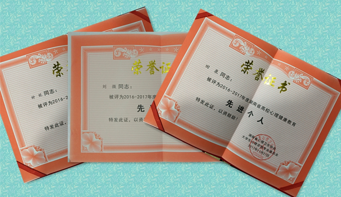 11月25-26日,湖南省心理卫生协会大学生心理咨询专业委员会第十二届学术年会在湘雅附二医院召开,来自全省近百所高校的心理咨询中心主任、专职心理课程教师、心理咨询师参会。会议对湖南省高校年度先进单位和先进个人给予了表彰,我校被评为2016-2017年度湖南省高校心理健康教育先进单位,心理健康教育咨询中心专职教师刘微、钟妮、兼职心理咨询师田泉被评为年度先进个人。