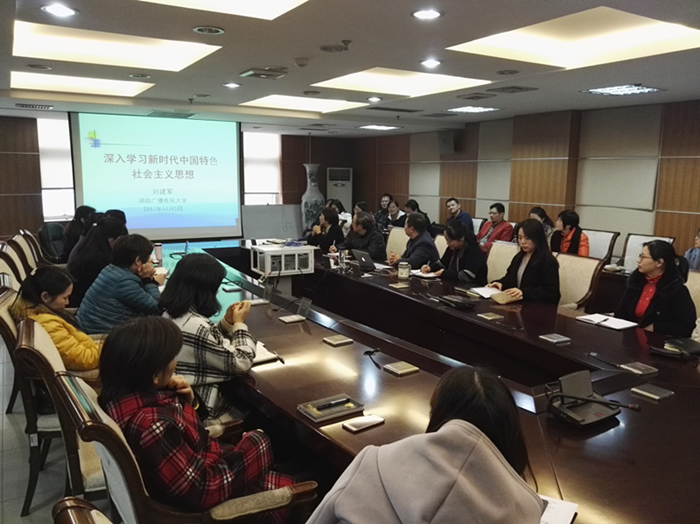 12月5号下午,开放教育文法、经管、理工农医三个教学部的全体教师,在党支部的统一组织下,在远教楼二会议室开展了党的十九大精神的专题学习。副校长刘建军就深入学习习近平新时代中国特色社会主义思想做了专题报告。