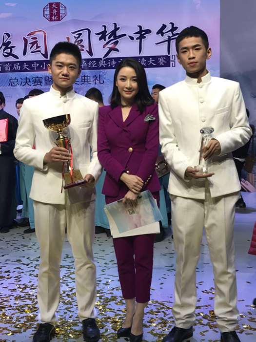12月27日晚,“天舟杯”湖南省首届大中小学生“中华经典诗文诵读大赛”总决赛暨颁奖典礼在湖南教育电视台落下帷幕,我校选送作品《关于青春》(杨璐、张一鸣)凭借真挚动人、成熟完美的表现征服了在场评委和观众,一举夺得总决赛第一名,捧得了此次比赛的冠军奖杯,机电工程系16级学生张一鸣还获选最佳魅力声音奖。