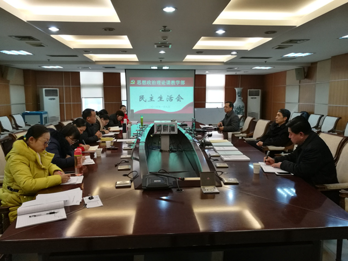 1月9日下午,思想政治理论课教学部在二会议室召开了2017年度民主生活会。党委书记陈建民、副校长邓楠、吴敏听取了思政教学部关于2017年的工作汇报并指导了本次民主生活会。会议由思想政治理论课教学部主任、党支部书记刘应君主持。