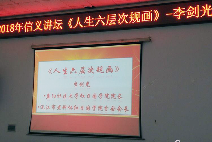 李剑光老先生结合十九大精神,联系实际,旁征博引,深入浅出地剖析了《人生六层次规划》的精髓,即"亦余心之所善兮,虽九死其犹未悔"的精神,锲而不舍,不断充实自己,提升自己,为中华民族的复兴贡献自已的光和热。