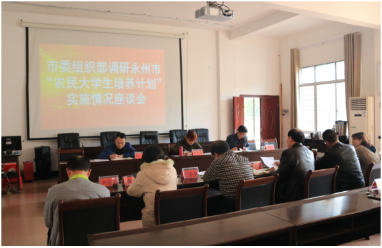 3月15日上午,永州市委组织部部委委员艾建华、党员教育中心主任张月林一行调研永州电大“农民大学生培养计划”项目实施情况。永州电大党委书记李长于、纪委书记左全华以及相关科室负责人参加调研并座谈。