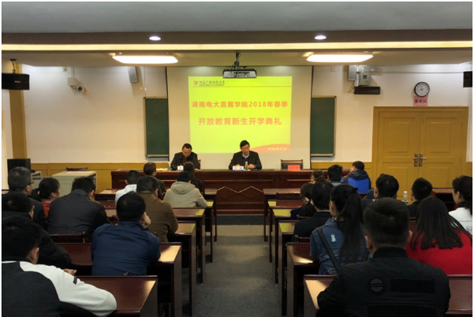 3月25日上午9点,直属学院在教学楼230会议室隆重举行2018年春季开放教育新生开学典礼。直属学院全体教职工,2018年春季新生代表出席了典礼。开学典礼由学院书记周可宝主持。