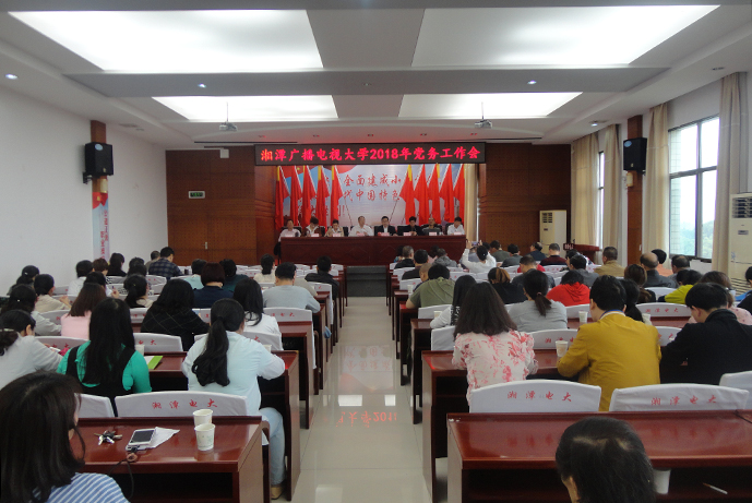 4月11日上午,湘潭电大2018年党务工作会在实训楼六楼报告厅召开。全体校领导、全校教职工和离退休党员代表共100余人参加会议。会议由学校党委委员、副校长龙翔主持。
