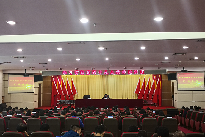4月17日下午,我校科级干部、党员学习贯彻党的十九大精神培训班在远教楼报告厅开班。党委副书记周宇出席开班仪式并讲话,思想政治课教学部主任刘应君给培训班上第一堂课,全校科级干部、在职党员参加学习培训。