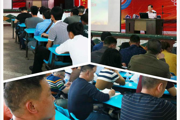 老师在讲坛上声情并茂的讲课,座位上的学员认真仔细的做着笔记