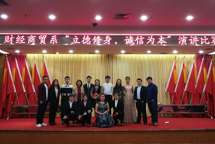 4月23日晚7:00,财经商贸系在远教楼负一楼报告厅举办了“立德修身,诚信为本”主题演讲比赛决赛。