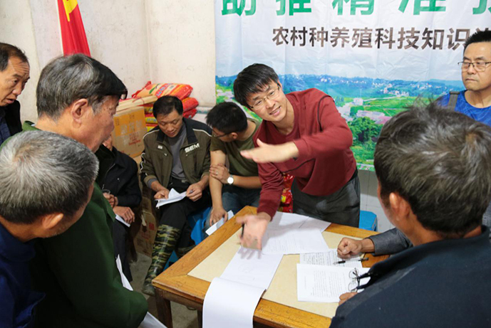这次流动课堂由学校选派具有丰富养殖经验、专业对口的青年老师喻凯、唐昊执教授课。课堂上,他们没有照本宣科,而是采取了你问我答的互动方式进行教学。从小鸡生病防治到蜜蜂土法养殖,村民们把在养殖中碰到的各种问题都悉数的向老师提问,老师都一一给予详细认真的解答。这种别具一格,形式新颖“一对一”精准、接地气的授课方式,大受群众的喜爱欢迎。课后,老师并把养殖环节中容易出现的问题,及如何防治编成了简洁的文字资料发放给农户。