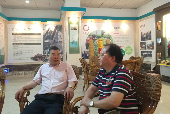 曹卫兵(左)率队到湖南浩茗茶业调研