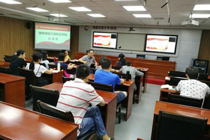5月14日下午14:30,我校全体专兼职思政教师参加了由中宣部、教育部主办的“全国高校思想政治理论课2018年版新教材使用培训”开班仪式。副校长吴敏出席设在我校远教楼四楼网络直播课堂的学校分会场的开班式。