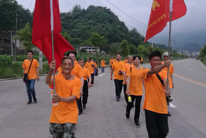 早上9点党员们统一集中到贺龙元帅铜像下,瞻仰了贺龙纪念馆,重温了老一辈革命家的光荣历史,然后从贺龙纪念馆出发,徒步行走9.1公里,到达刘家坪红二方面军长征出发纪念碑处。队伍中尽管有8名七、八十多岁的老党员,但大家相互鼓励、相互扶持坚持将全程走完。