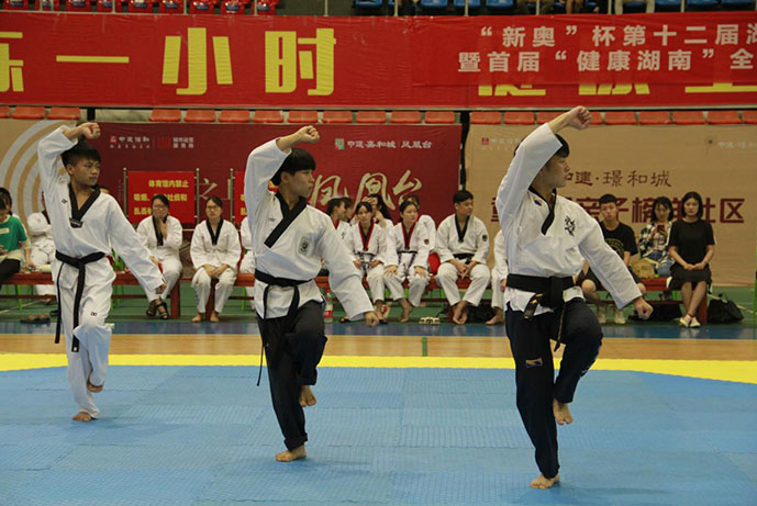 比赛分武术24式太极拳和跆拳道两个大项。比赛中,选手们精神抖擞、轻松自然,动作神韵兼备,招式虚实分明,充分展现了当代学生健康向上的精神面貌和艺术风采,赢得了观众们的阵阵掌声。经过一个小时的激烈角逐,各项比赛圆满完成。旅游管理系王丽雯和财经商贸系杨程分获武术二十四式太极拳女子组和男子组第一名,网络技术系杜乔浩、陈佳怡组合获得跆拳道混双品势第一名。跆拳道男女团体品势的冠军由网络技术系和财经商贸系分别夺得。网络技术系杜乔浩、网络资源系唐锦岳夺得跆拳道男子个人品势第一名,网络技术系邓春月夺得跆拳道女子个人品势第一名。