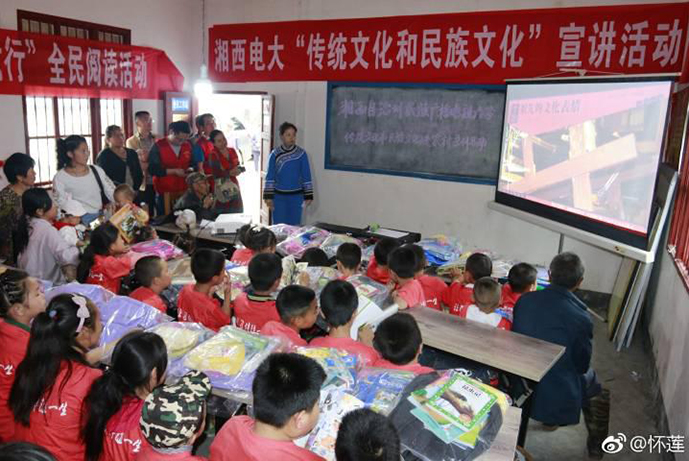 活动中,湘西电大教师组织孩子们学唱了土家族民歌《小背篓》、观看了“土家织锦和茅古斯舞”短片、进行了现场交流,开展了土家族、苗族传统文化和民族文化知识有奖竞答等系列活动,引领村民及儿童感受少数民族传统文化和民族文化的独特魅力。村民及孩子们积极响应,现场气氛活跃,纷纷表示这样的活动很有意义,希望能组织更多的民族文化进扶贫村活动,更好地助力精准脱贫。
