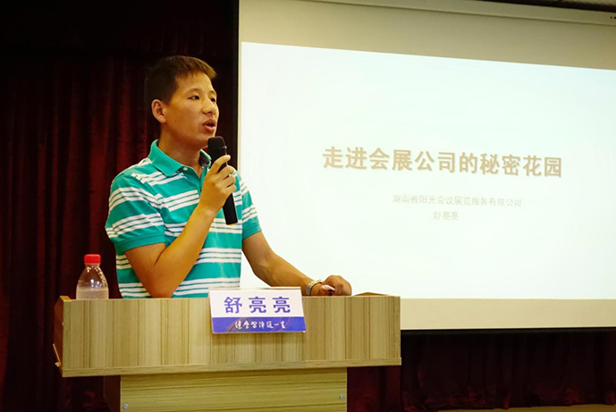 舒亮亮作为省内知名旅游人,有着丰富的行业经验。他向同学们介绍了自身从事会展业的经历,并以阳光会展的优秀案例作为切入点,向同学们解读了会展行业相关知识和信息。在讲座中,他从国内外会展业发展形势、湖南会展业在全国的地位和前景、会展项目策划与设计、会展项目执行以及行业对会展人才的要求等方面展开。
