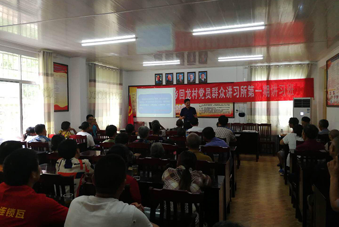 6月29日,我校结对帮扶村桑植县洪家关白族乡回龙村党员群众讲习所座无虚席,张家界市广播电视大学副校长彭兴顺围绕《践行核心价值观,传承中国好家风》主题,以通俗的语言、鲜活的案例和接地气的讲演方式应邀首场开讲。该村村支两委干部、议事会成员、部分党员和建档立卡户代表共60多人聆听了讲座。