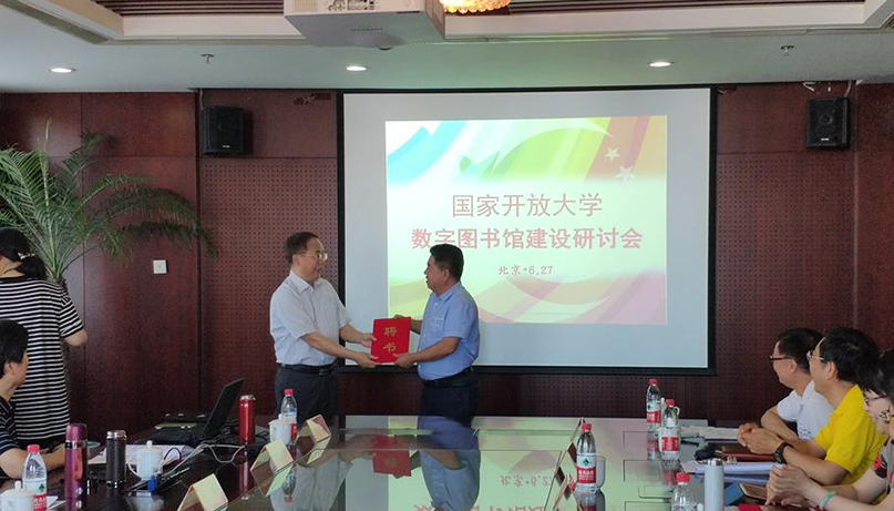 6月27日上午,研讨会在国家开放大学(简称“国开”)举行,会议由国开副校长李林曙主持,国开党委书记、校长杨志坚为新成立的国开数图委委员颁发聘书,杨志坚在讲话中明确了国开数字图书馆的建设重点和未来发展方向。