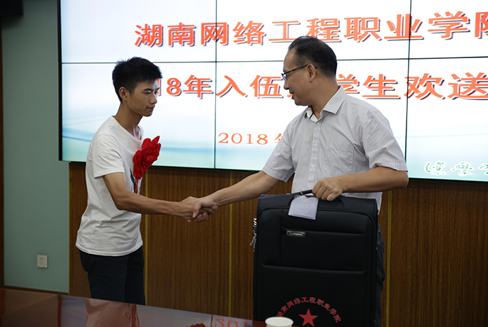9月9日下午,我校在远教楼三会议室举行2018年新兵入伍欢送会。副校长吴敏出席,党委武装工作部及四系相关教师、21名入伍新兵和校卫队同学参加欢送会。会议由党委武装工作部部长李涌涛主持。