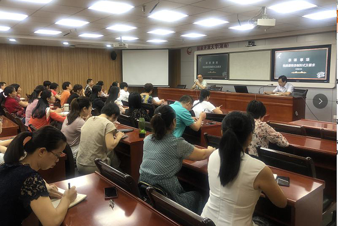 为切实提升教师信息化教学水平,9月13日上午,我校教务处组织并在教育信息技术中心协助下,在云教室开展了视频课程录制及云录播培训,文法、理工、经管等教学部门近60名教师参加培训。培训会由教育信息技术中心副主任侯全军主持,教育信息技术中心两位老师担任主讲,电大教务处处长杨先林到场指导。