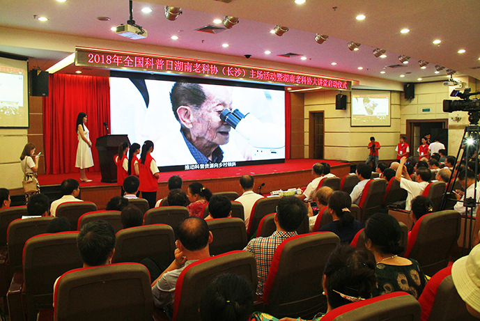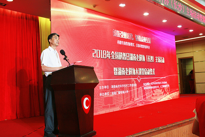 9月15日上午,2018年全国科普日湖南老科协(长沙)主场活动暨湖南老科协大讲堂启动仪式在我校远教楼负一层报告厅隆重举行。长沙市外全省13个市州广播电视大学与老科协设立了分会场,现场直播长沙主场活动和科普报告会,近千人参加了各分会场的活动。