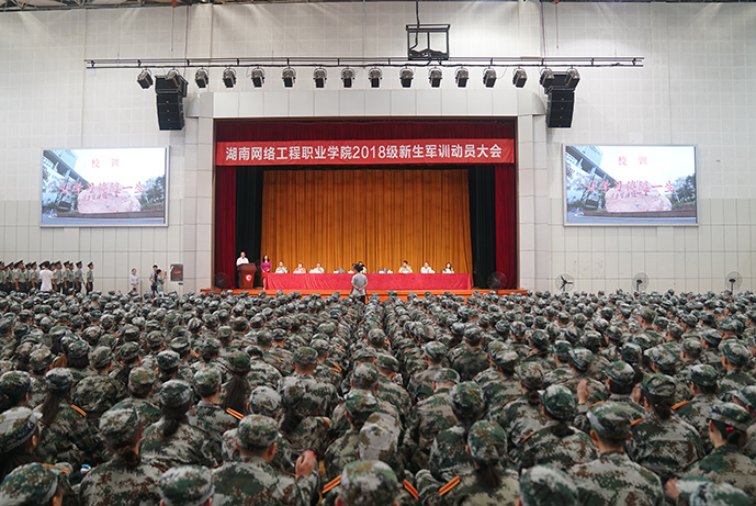 邓楠宣布2018年湖南网络工程职业学院军训正式开始