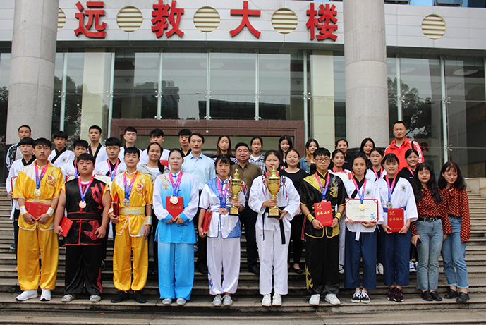 我校体育代表团由副校长邓楠担任团长,网院副院长陈碧华担任副团长,公共课教学部主任曾伟担任领队,郭贤锋、熊纯子、张斯、胡煜、欧亚五位老师担任教练,选派了35名学生运动员参加了武术、跆拳道、健美操三个项目的比赛,荣获了2金3银6铜的好成绩。