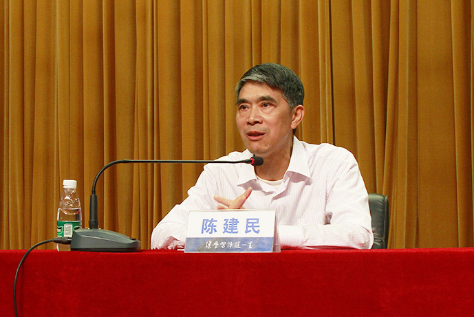 “青年是国家的未来,青年的价值取向决定了未来整个社会的价值取向。广大青年有信仰,民族就有希望,国家就有力量。人们衣服上的扣子扣错了,可以重新扣好。广大青年人生的第一粒扣子扣错了,不仅会影响个人的一生,还会影响社会发展进程。”陈建民建议新生们进校后要尽快适应并融入大学生活,养成良好的学习和生活习惯,保持积极乐观的健康心态,做一名健康的人,做一名快乐的人,做一名善良的人。同时,他勉励新生在迈入大学后,明确奋斗目标,自主学习、自尊自励,自爱自强,自信独立地面对问题、应对挑战、承担责任,真正做到“博学之,审问之,慎思之,明辨之,笃行之”。