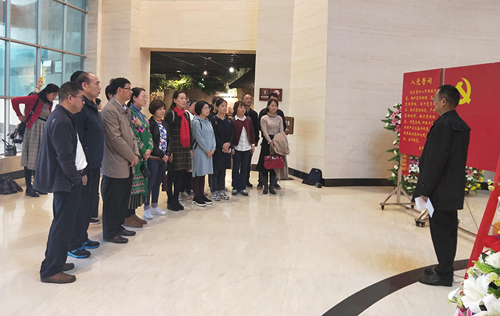 在参观纪念馆前,党支部在馆内大厅举行了预备党员宣誓仪式。在雄伟的国际歌之后,支部书记周可宝同志介绍了预备党员王晓玲同志的基本情况,随后王晓玲同志在党旗下庄严宣誓,并和入党积极分子缪韬同志分别作表态发言。广大党员通过参加预备党员宣誓仪式活动,进一步加强了党性锻炼。