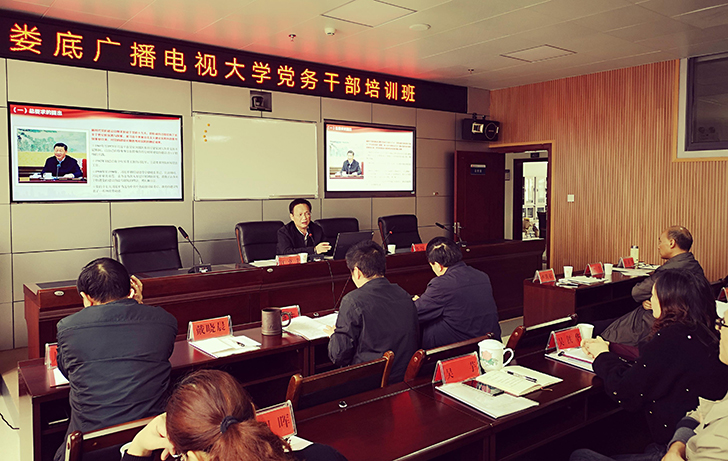 “新时代党的建设总要求主线是加强党的长期执政能力建设、先进性和纯洁性建设,这是纲和魂,纲举目张,魂在本在!”江克美书记洪亮的声音回响在娄底电大四楼云教室。