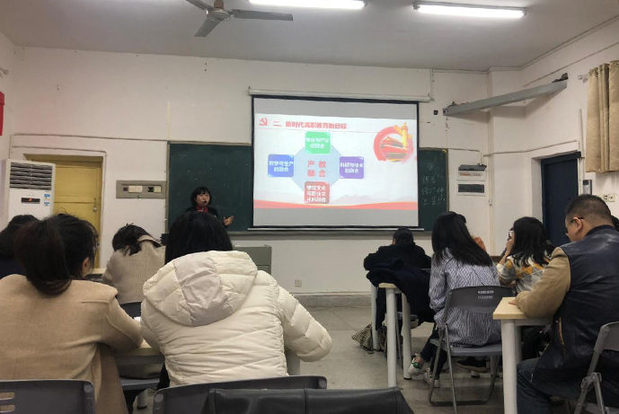 左芊老师授课主题为“践行党的十九大精神,开启新时代高职教育新征程”。她结合党的十九大报告中指出的“完善职业教育和培训体系,深化校企合作、产教融合”,从“新时代高职教育新要求”“新时代高职教育新目标”“新时代高职教育新思考”“新时代高职教师成长新思考”四个方面进行讲解。