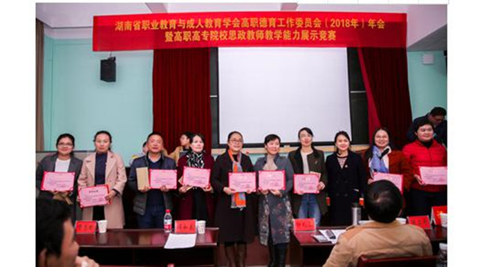 11月23日,湖南省职业教育与成人教育学会(2018年)年会暨首届全省高职高专院校思政教师教学能力展示竞赛在长沙民政职院隆重举行,来自全省70多所高职高专院校思政战线的领导及专家学者共计120余人参加本次会议。