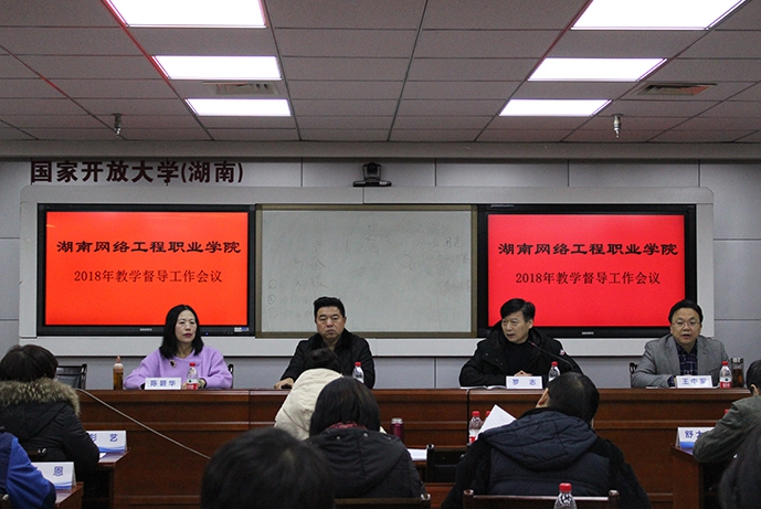 127日下午,我2018年高职教学督导工作会议在远教楼四楼云教室召开。教务处、学生处、实训中心主要负责人,各系部主任、副主任,各教研室主任,诊改中心全体成员及教学督导专家共计40余人参加会议。校党委委员、副校长邓楠教授、正校级督导罗志教授、网院副院长陈碧华教授出席会议,教学工作诊断与改进中心主任王中军教授主持本次会议。